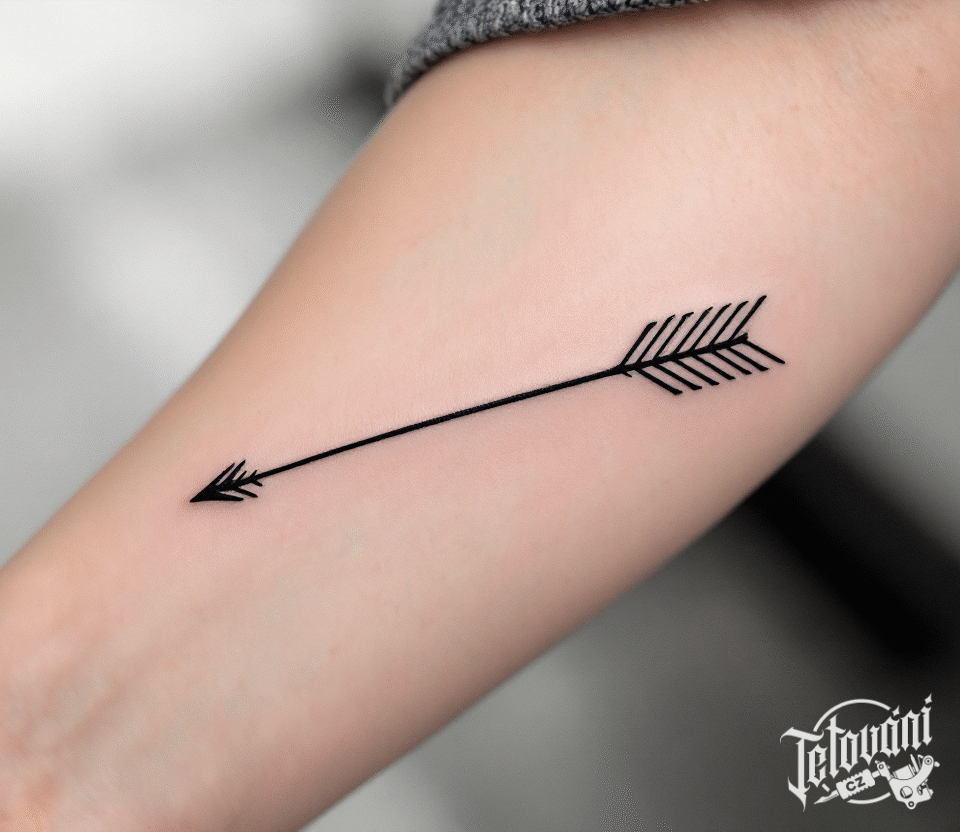 Tetování šíp, šipka dolů na předloktí