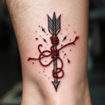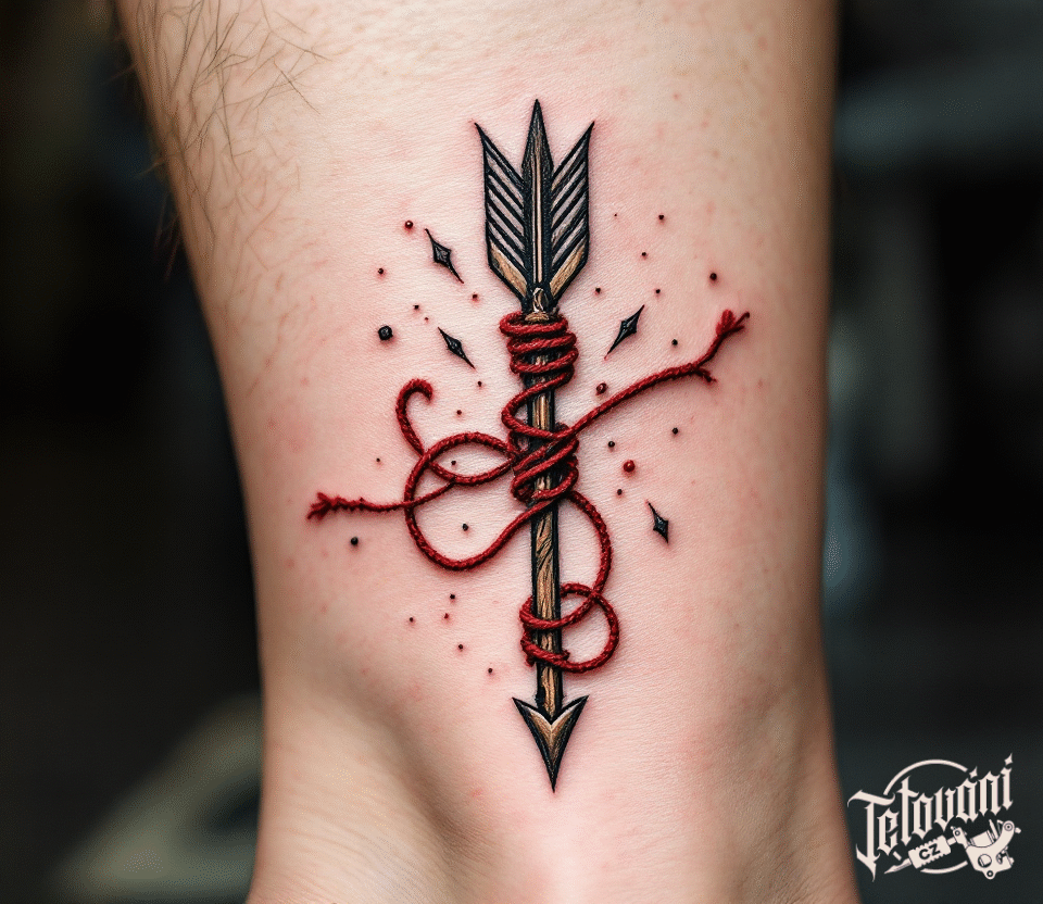 Tetování šíp, šipka s provázkem na lýtko
