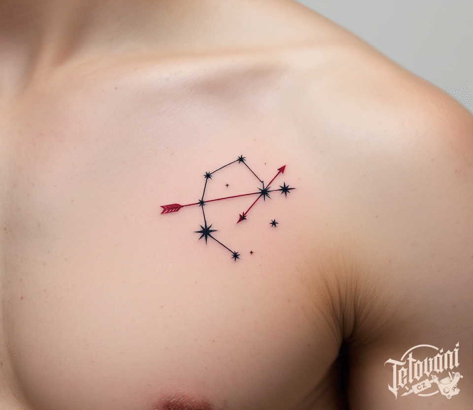 Tetování šíp, souhvězdí střelce na prsa
