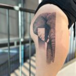 Tetování slon na boku stehna