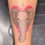 Tetování slon, srdce na lýtko