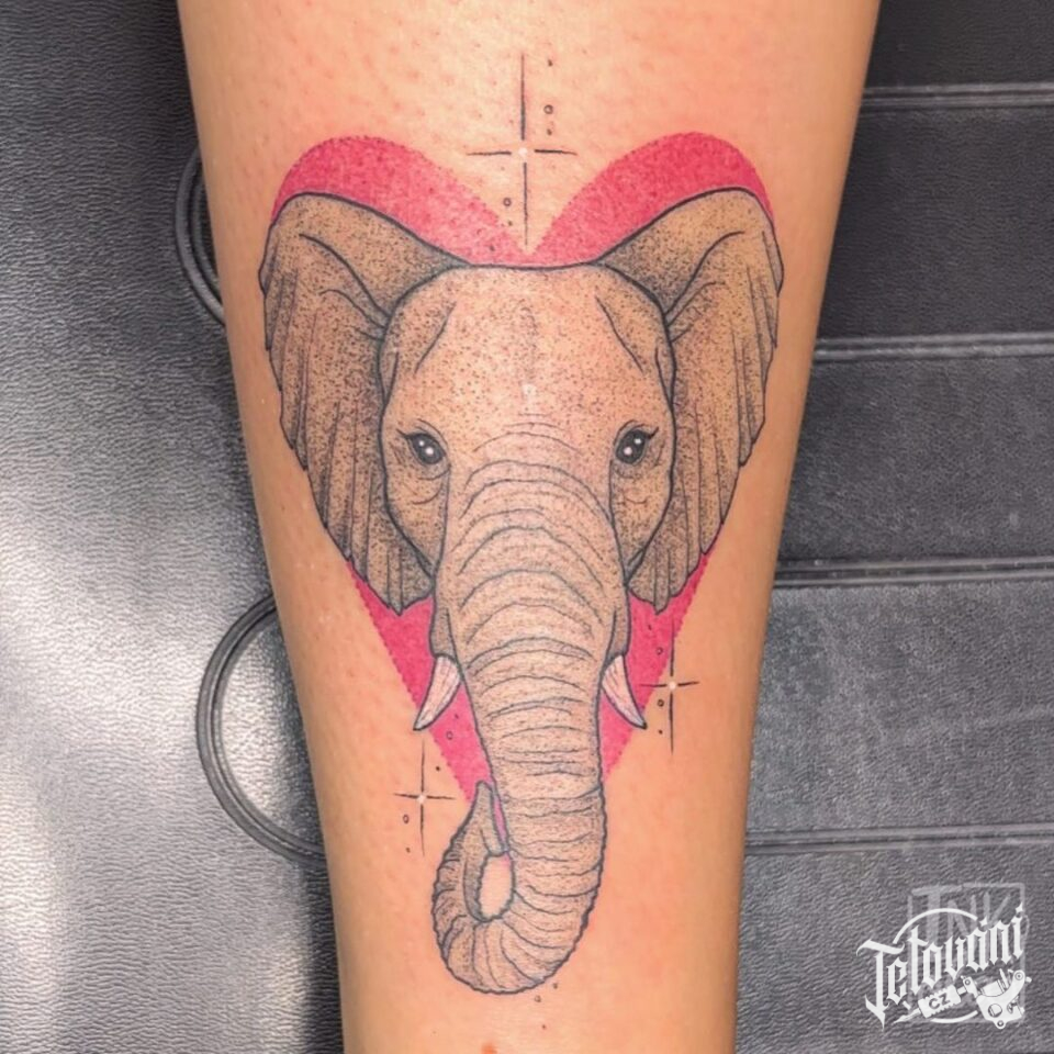 Tetování slon, srdce na l...
