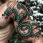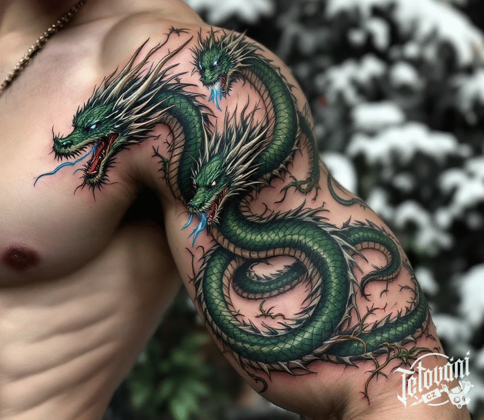 Tetování slovanské symboly, mýtické bytosti, draci na rameni