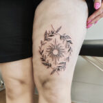Tetování Slunce a květiny na stehně
