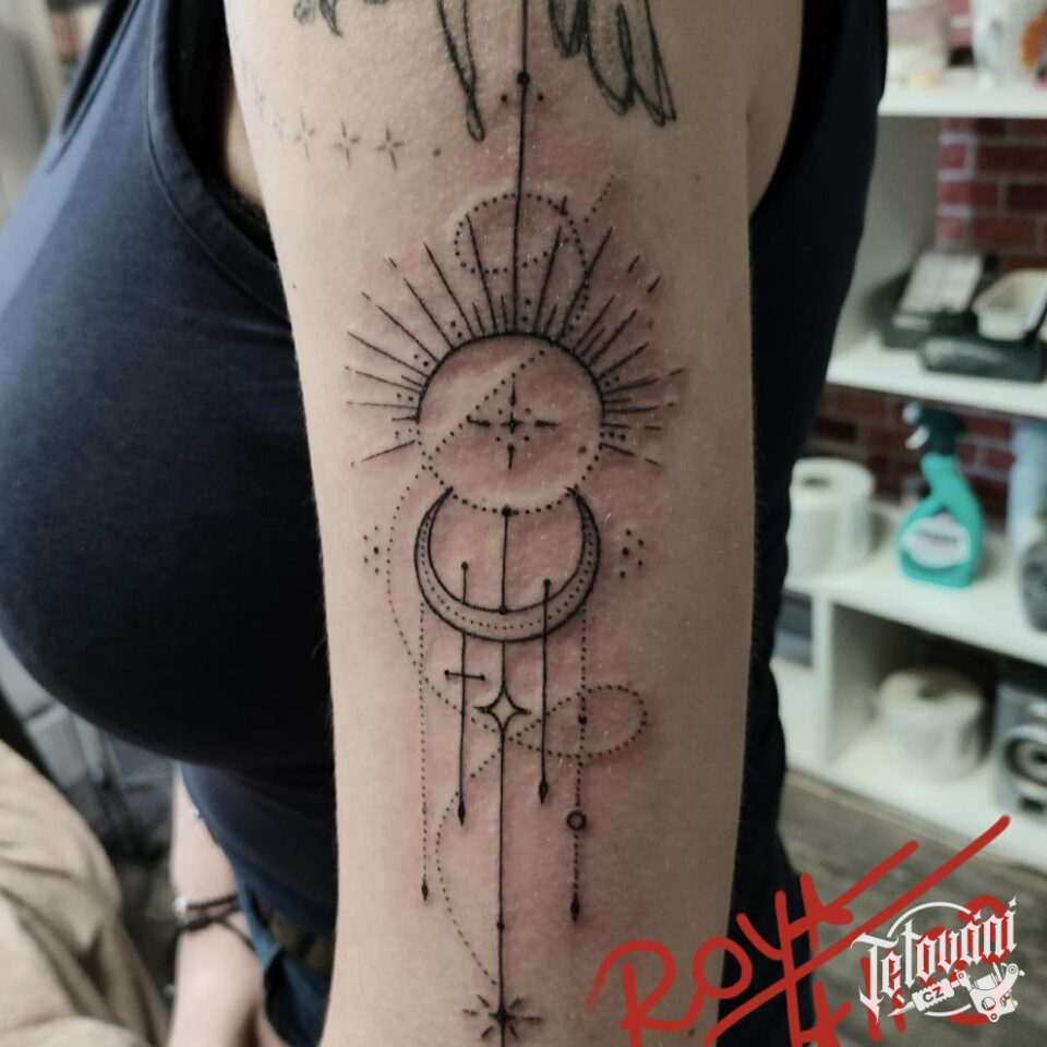 Tetování Slunce a Měsíc, ornamenty na paži