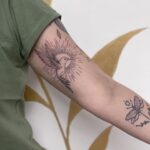 Tetování slunce, kolibřík na paži