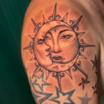 Tetování slunce, znaky a symboly na rameno