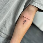 Tetování slunečnice s nápisem, citát na předloktí