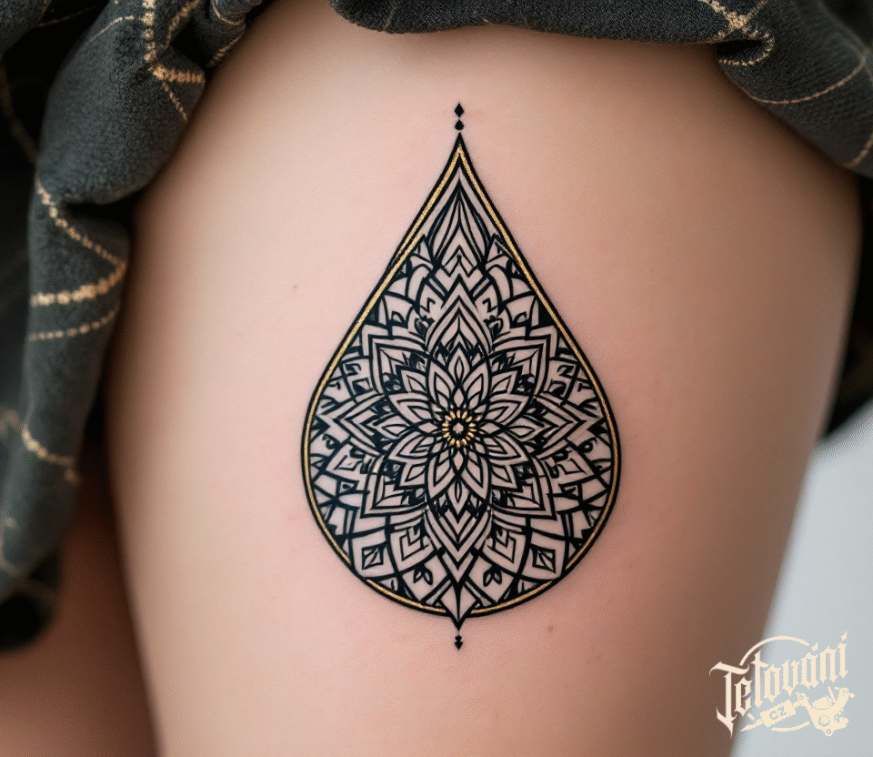 Tetování slza mandala na stehně