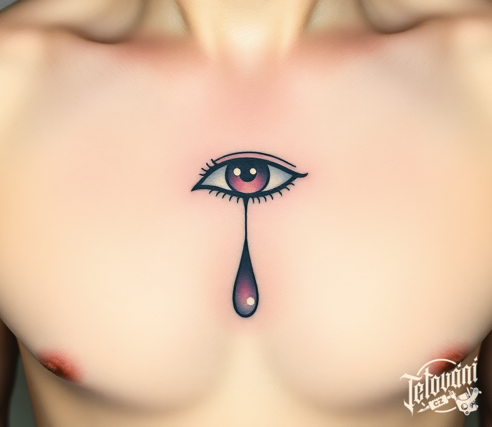 Tetování slza oko na hrudníku