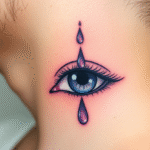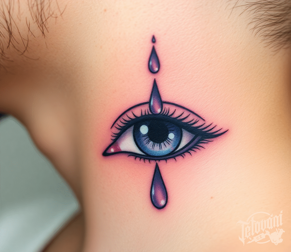 Tetování slzy oko na krku