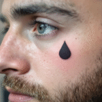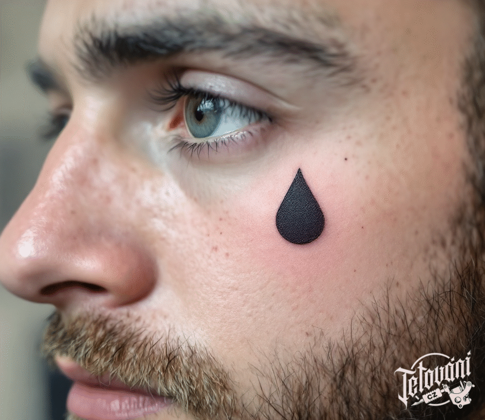 Tetování slzy velká černá slza pod oko na obličeji