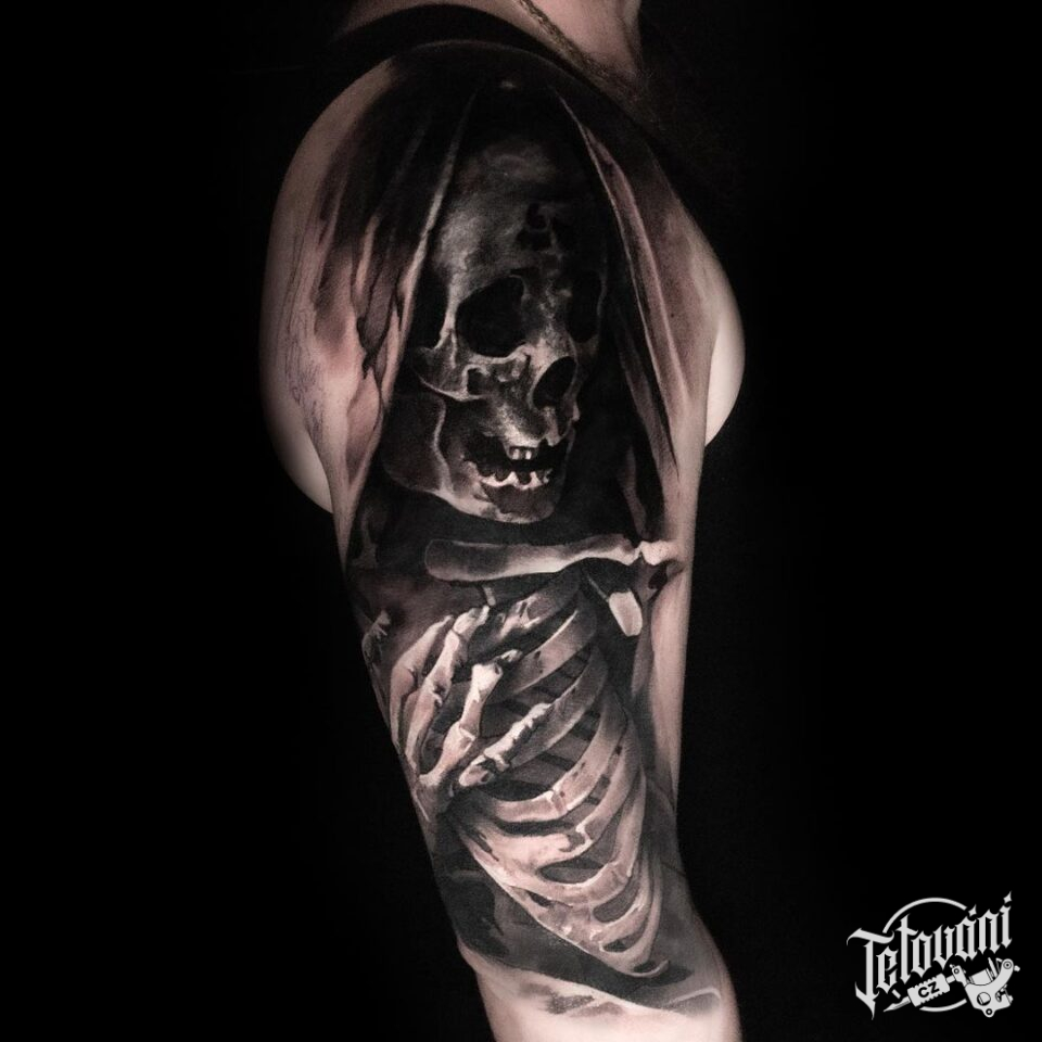 Tetování smrt, kostlivec na rameni