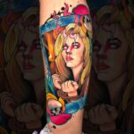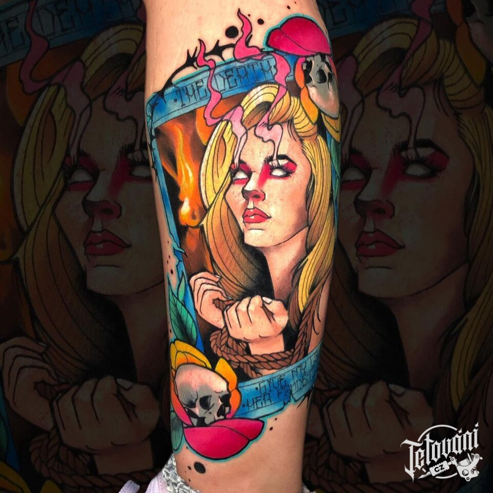 Tetování smrt, portrét na lýtku