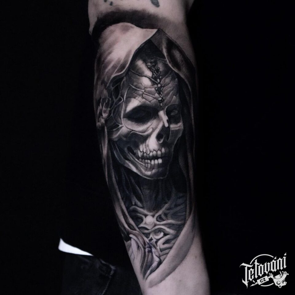 Tetování smrt, portrét na předloktí