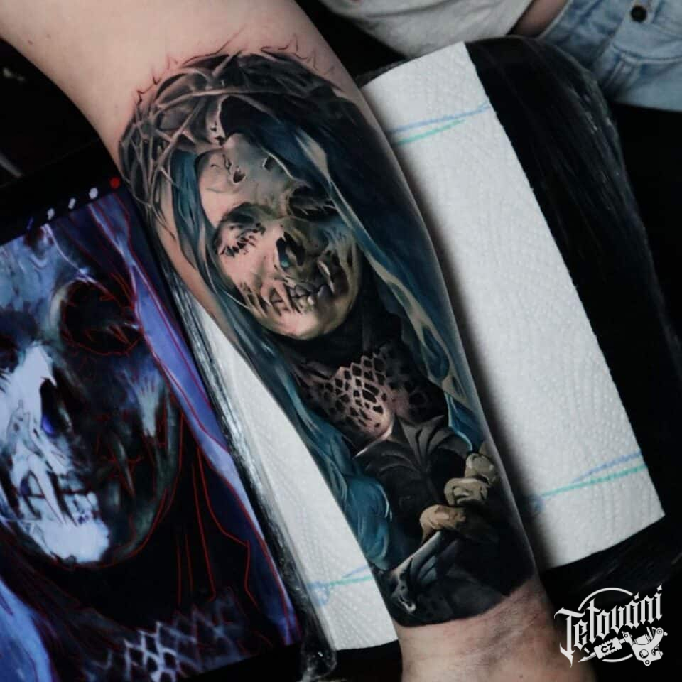 Tetování smrt, portrét na předloktí