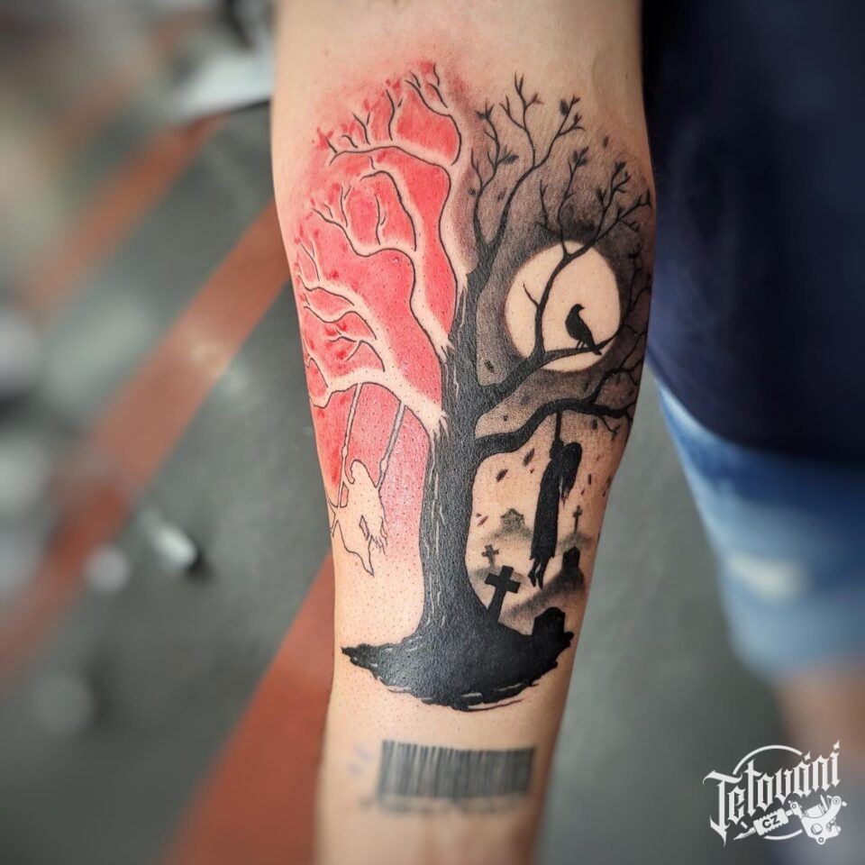 Tetování smrt, strom na předloktí
