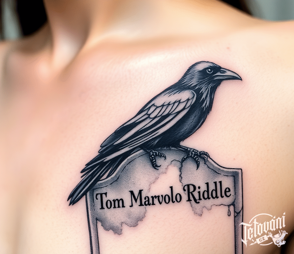 Tetování Smrtijed Harry Potter, z filmů a pohádek, nápis pod klíční kost