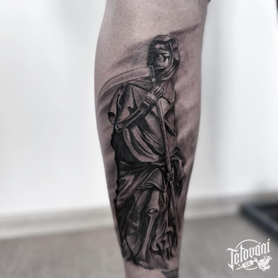 Tetování smrtka na holeň