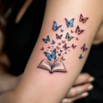 Tetování snář a motýly na rameno