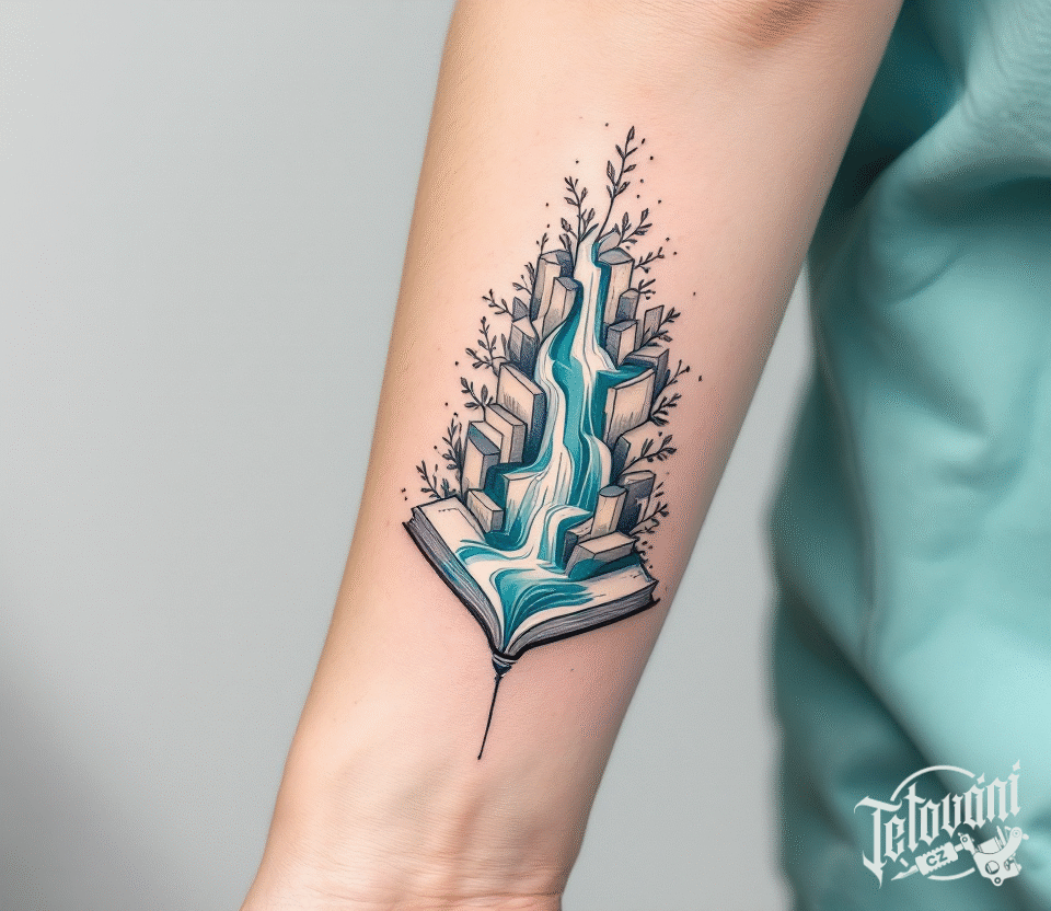 Tetování snář a proud vody na předloktí