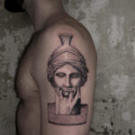 Tetování socha, portrét s rukou na rameni