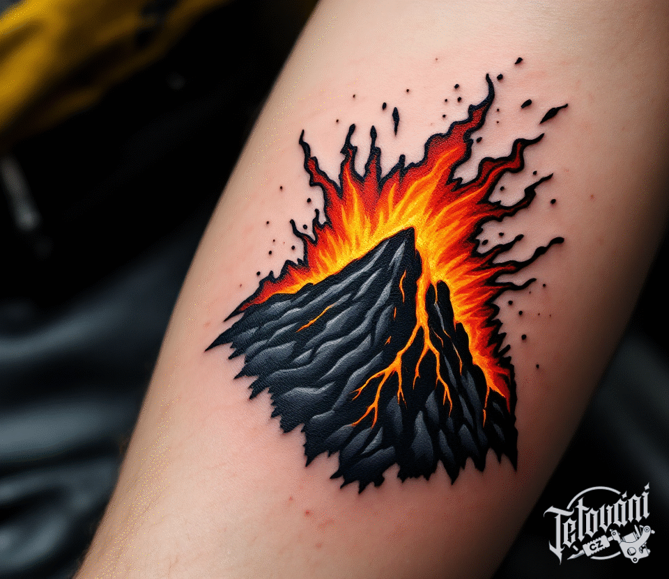 Tetování sopka, oheň na předloktí