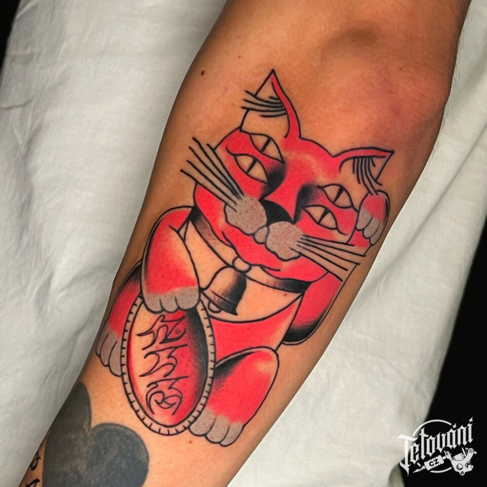 Tetování soška čínské kočky na předloktí