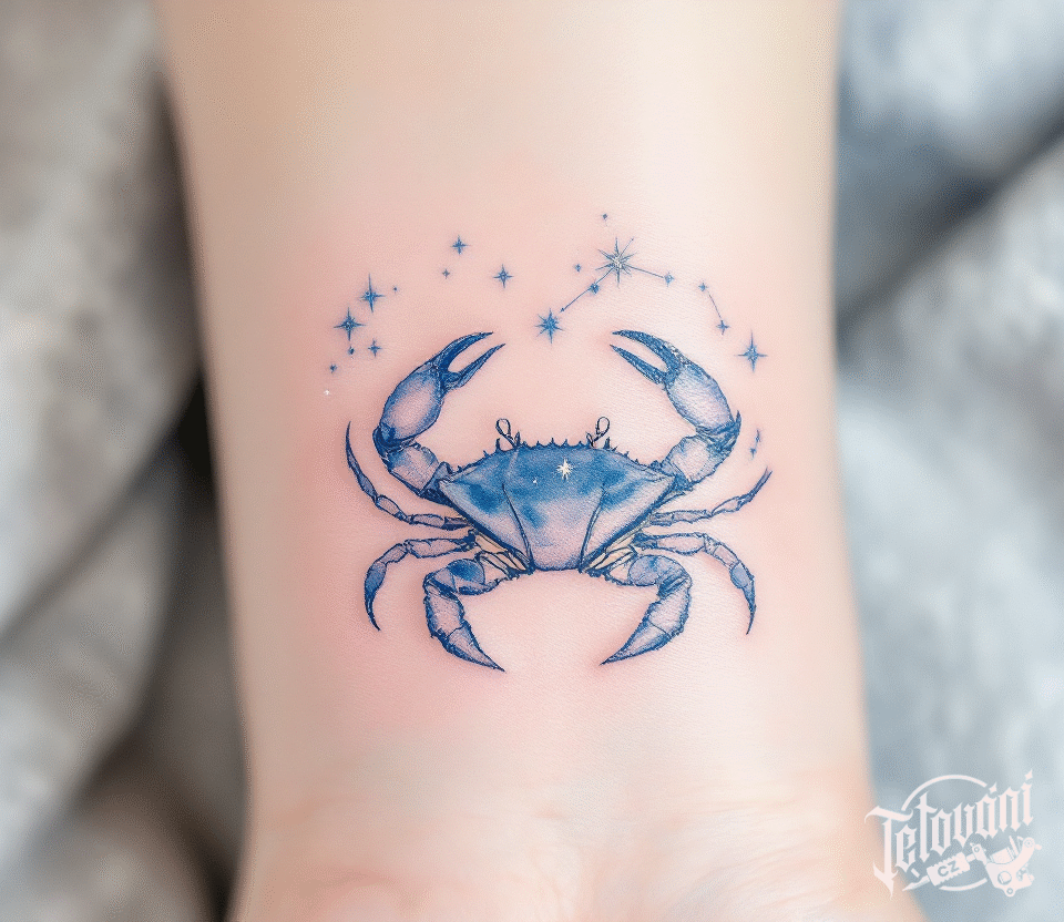Tetování souhvězdí a znamení zvěrokruhu rak na předloktí