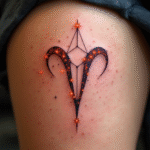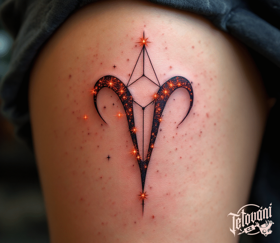 Tetování souhvězdí berana, beran znamení zvěrokruhu na stehně