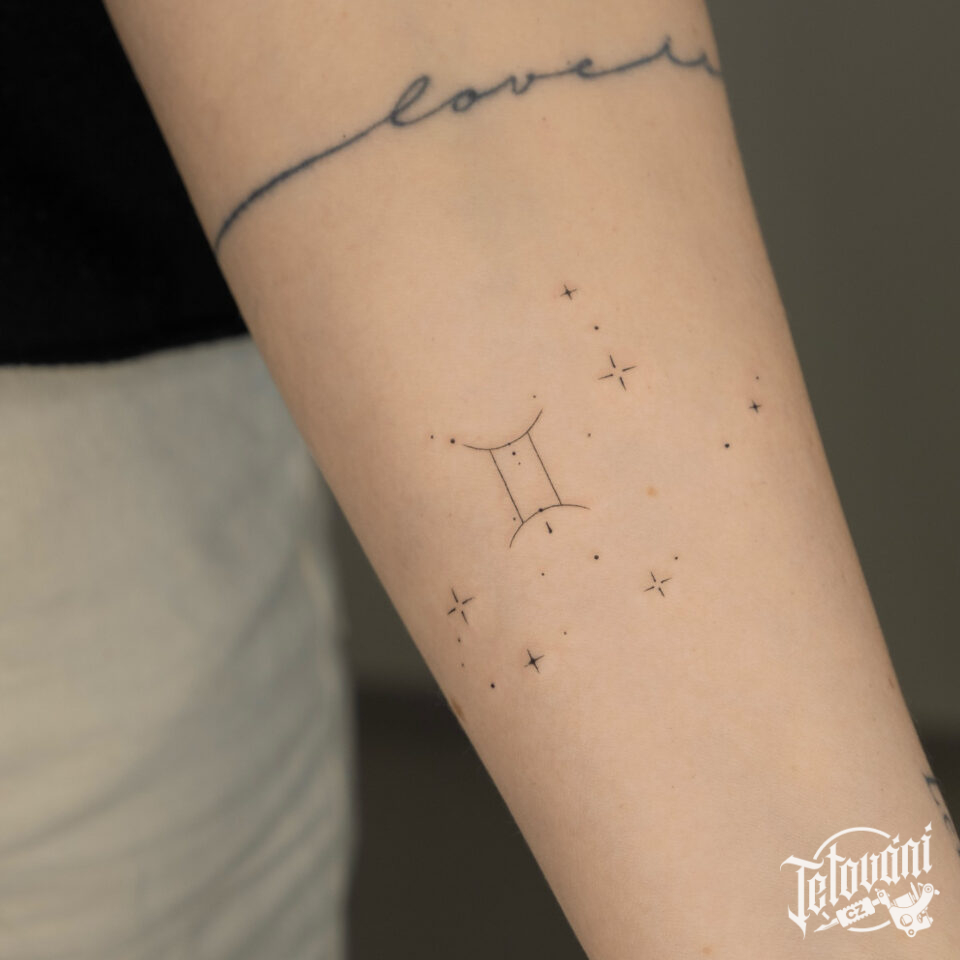 Tetování souhvězdí Blíženci znamení zvěrokruhu na předloktí