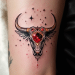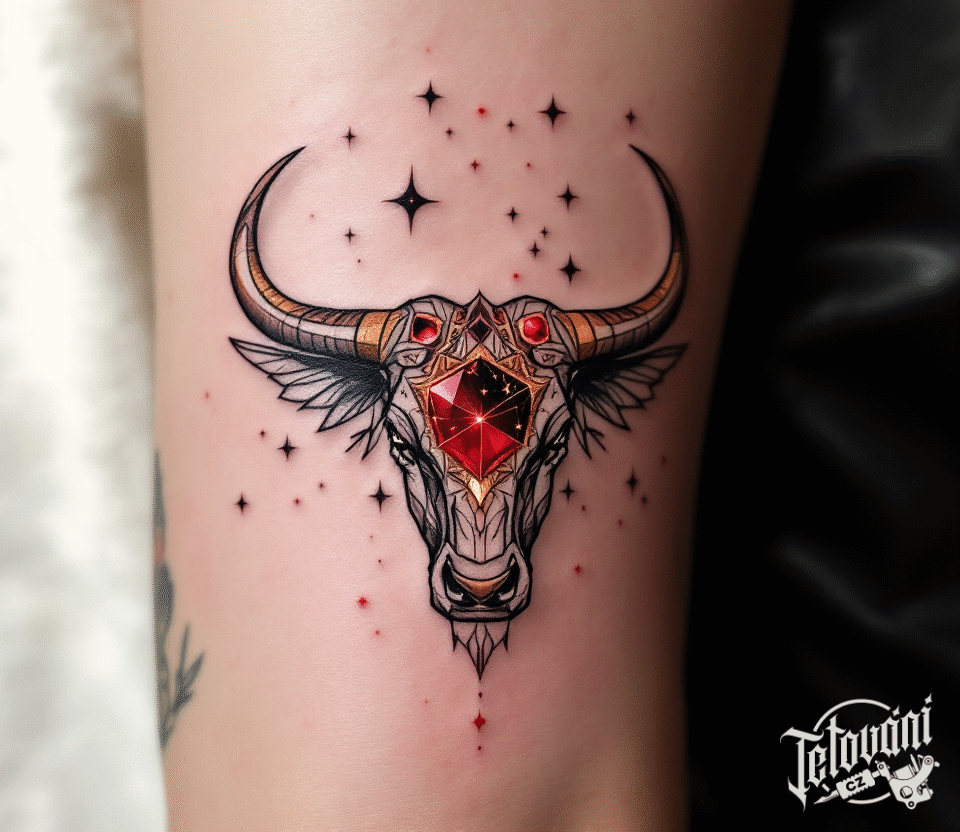 Tetování souhvězdí býka, hlava býka s drahokamem na ruce