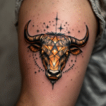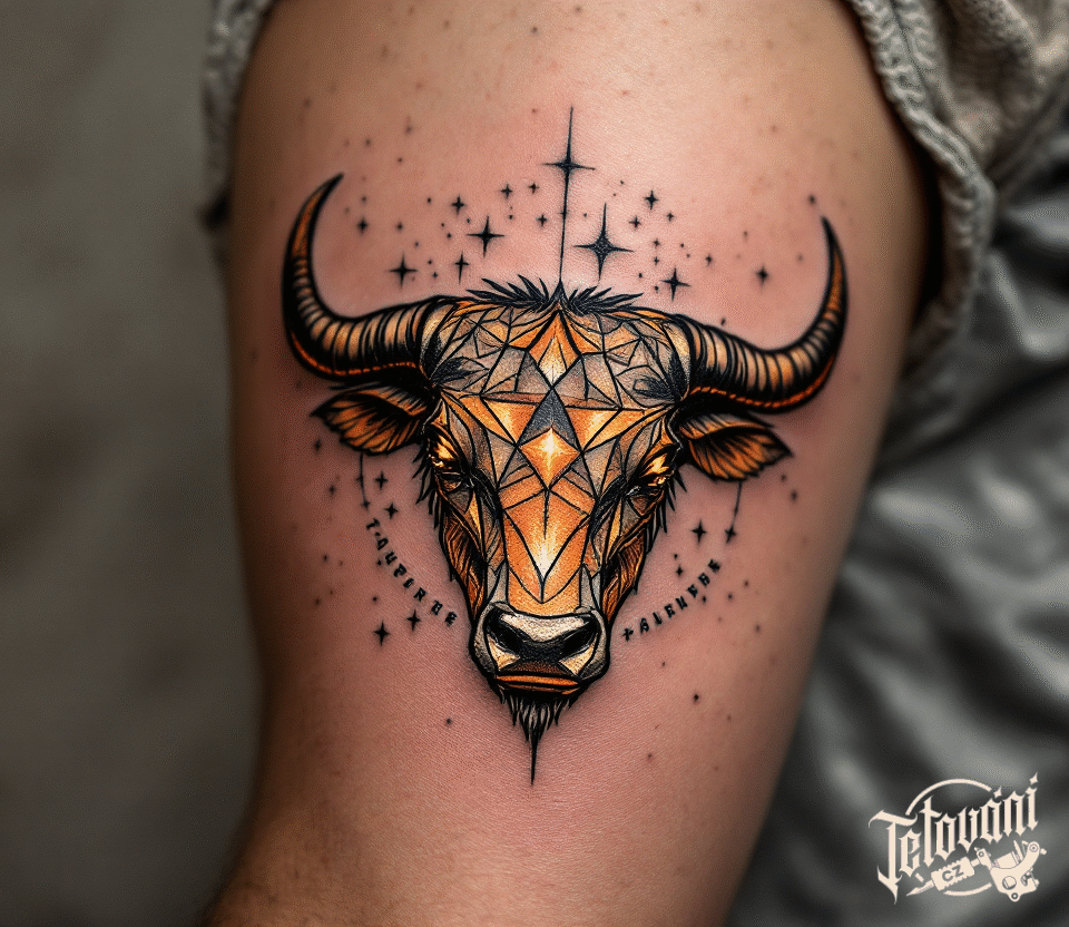Tetování souhvězdí býka, pozlacená hlava býka na ruce
