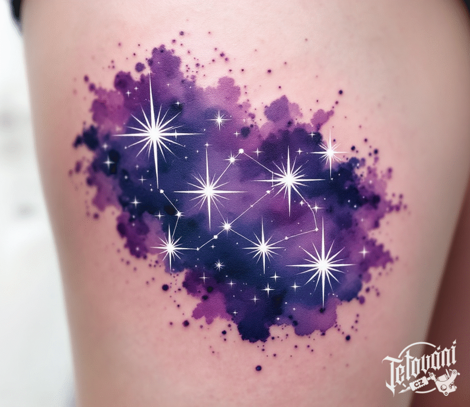 Tetování souhvězdí kozoroha, hvězdy na stehně