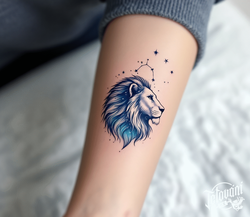 Tetování souhvězdí lva, hlava lva na předloktí