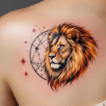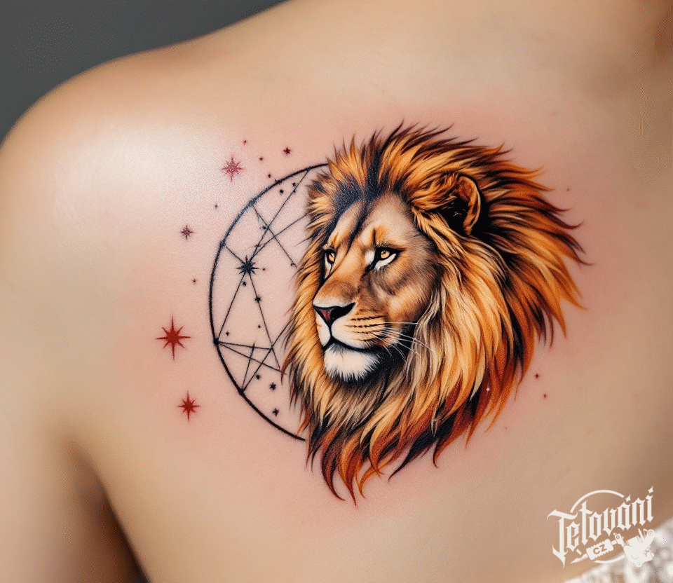 Tetování souhvězdí lva, zvíře, lev znamení zvěrokruhu na lopatce
