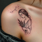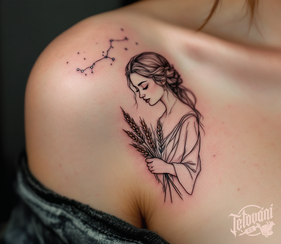 Tetování souhvězdí panny, znamení zvěrokruhu panna, žena pod klíční kost