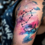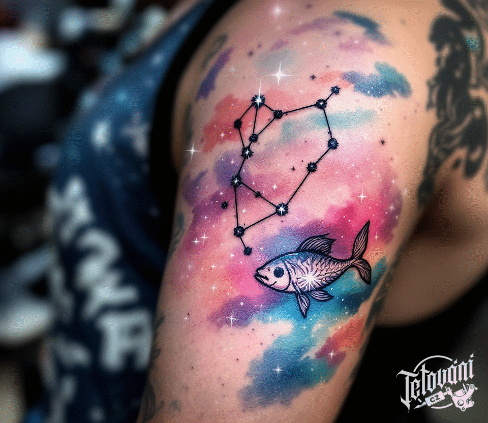 Tetování souhvězdí ryba, znamení zvěrokruhu na rameno