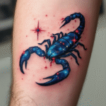 Tetování souhvězdí štíra s červenými hvězdami na předloktí
