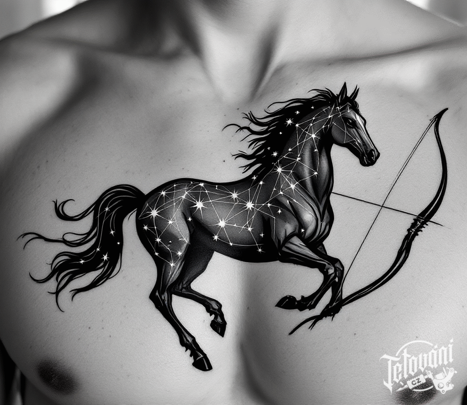 Tetování souhvězdí střelce, kůň na hrudník