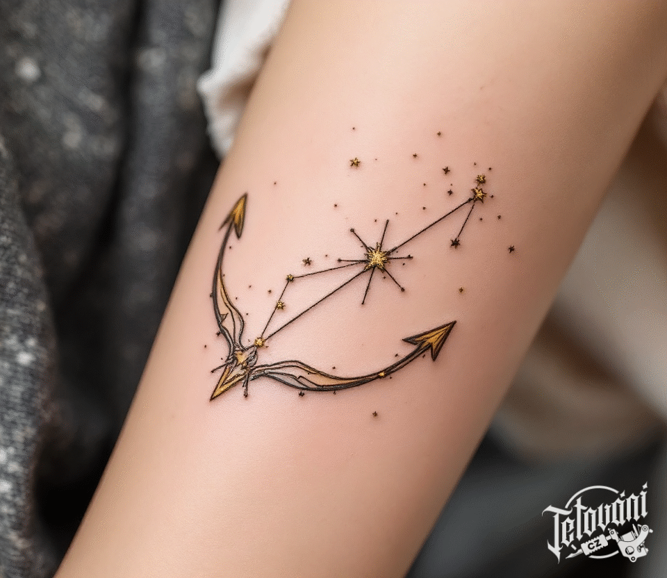 Tetování souhvězdí střelce luk a šíp na rameno