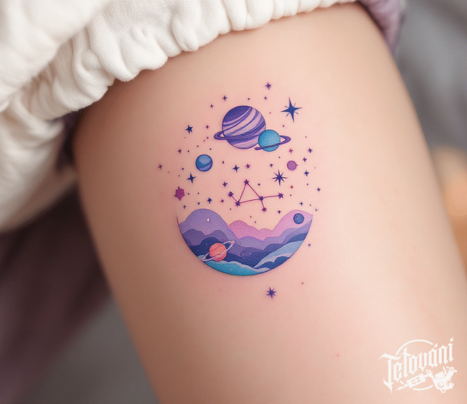 Tetování souhvězdí střelce, vesmír na rameno