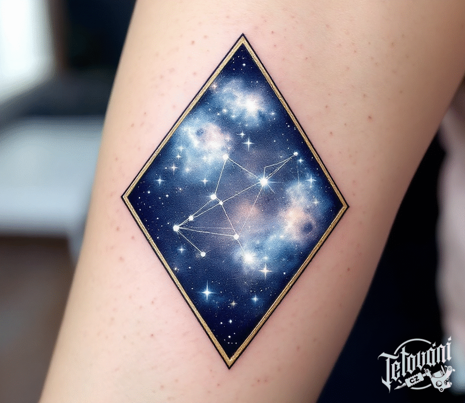 Tetování souhvězdí střelce, vesmír, tvary na rameno