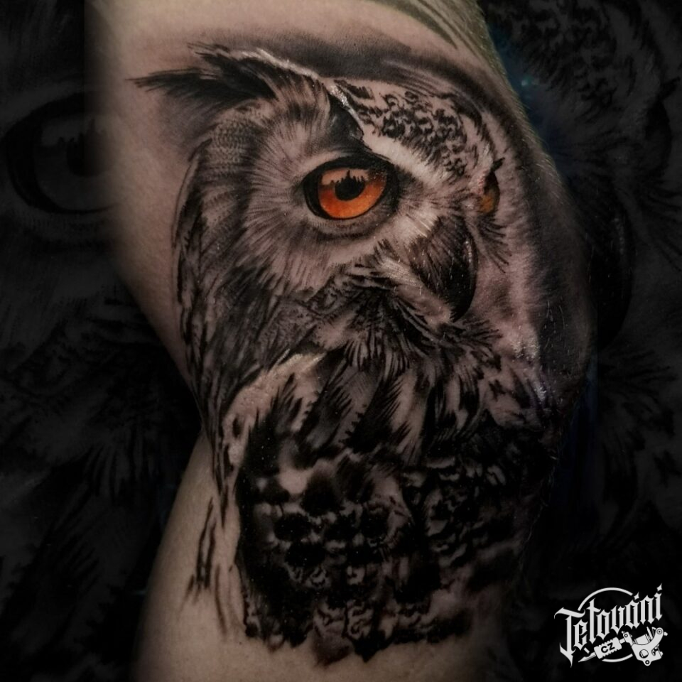 Tetování sova na noze