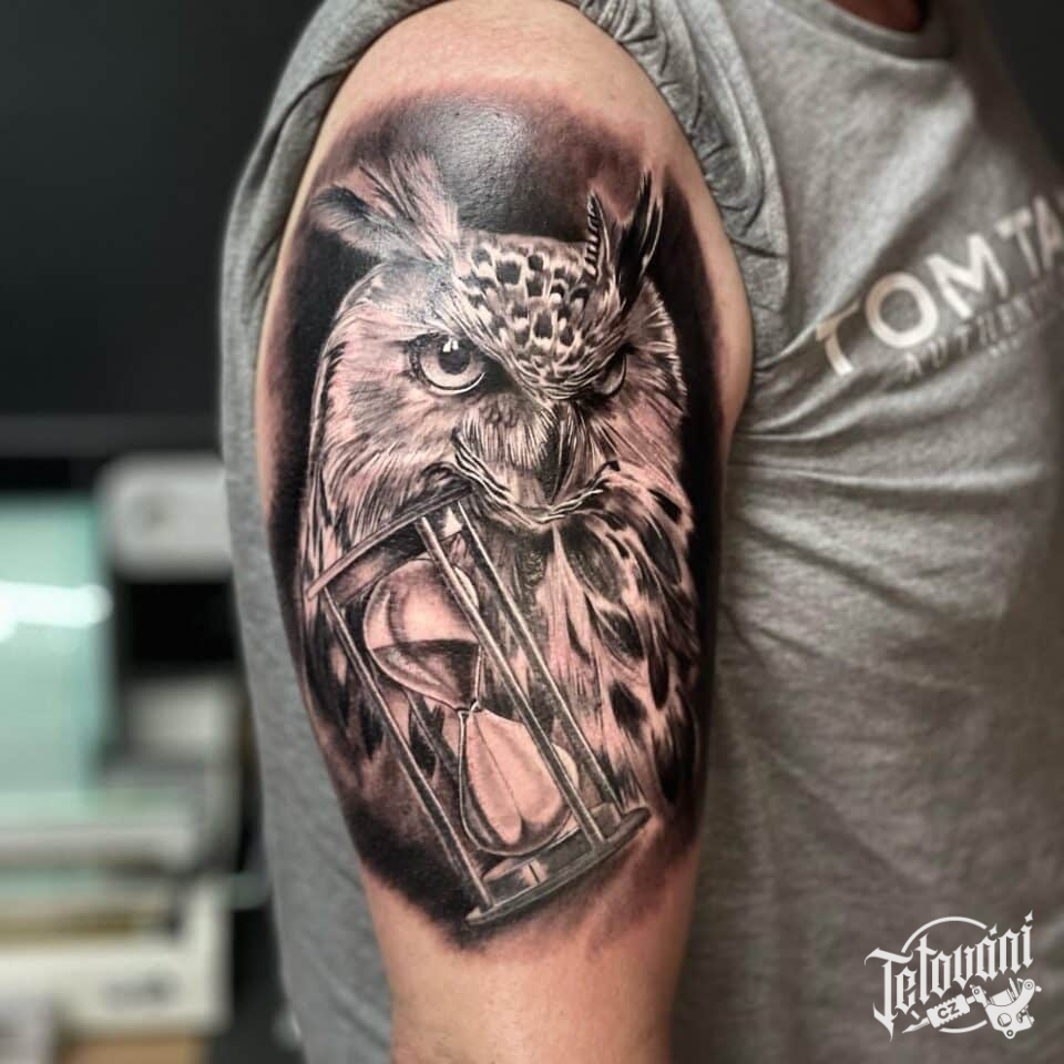 Tetování sova na paži