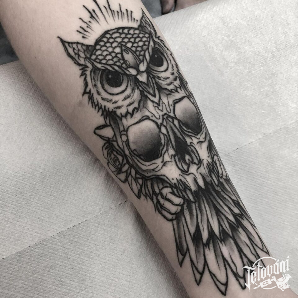 Tetování sova na předloktí