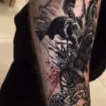 Tetování sparťanský bojovník a kůň na předloktí