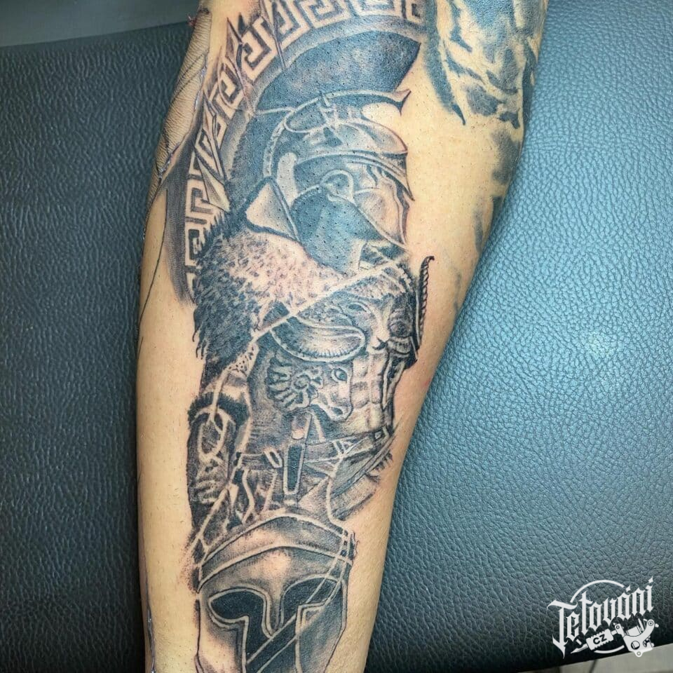Tetování sparťanský bojovník na předloktí