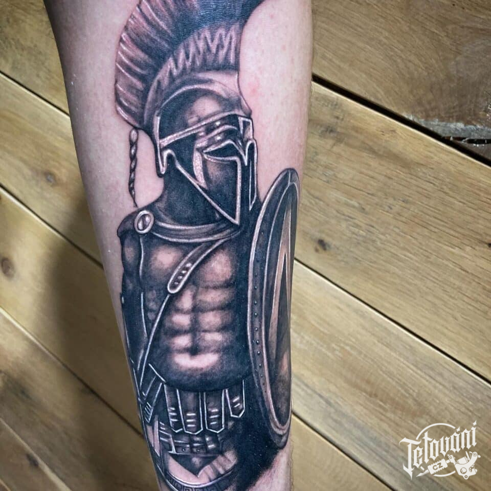 Tetování sparťanský bojovník na předloktí