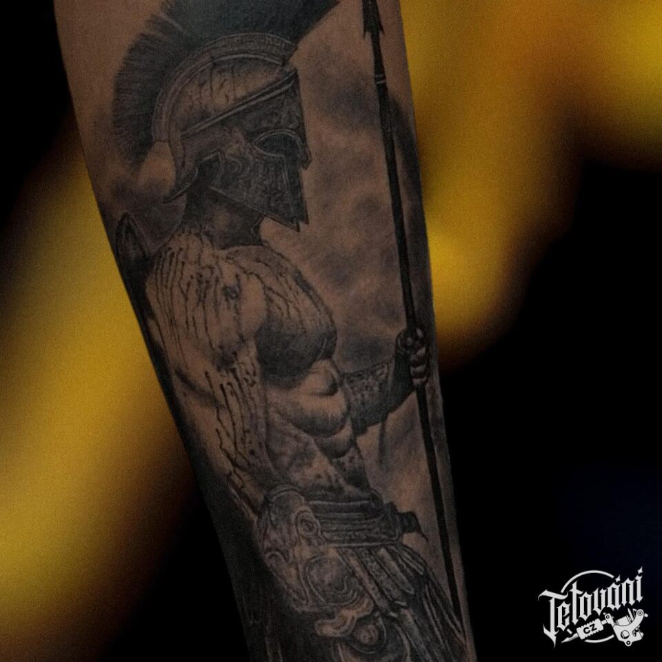 Tetování sparťanský bojovník na předloktí